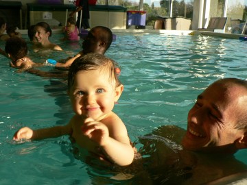 Nous avons environ 60 bébés inscrits à cette activité et l'ambiance est vraiment sympathique. Nous acceptons les bébés à partir de 3 mois et jusqu'à 3 ans. Apres 3 ans, les enfants sont aiguillés vers le jardin aquatique, toujours accompagnés de leurs parents dans l'eau : ils apprennent l'autonomie, à se déplacer dans l'eau, se cacher sous l'eau, faire des bulles, faire la flêche, aller chercher des objets au fond de l'eau..
