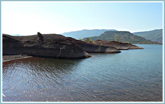 Aux bords turquoises de l'eau.
