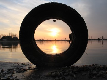 Pourquoi cette photo d'un superbe coucher de soleil sur le bassin de Thau ornée d'un pneu d'automobile ? C'est pour appeler votre attention sur la double réalité de cette « merveille » du littoral languedocien, car sachez que j'ai trouvé le pneu à l'endroit même où il a été photographié! J'ai pour habitude de célébrer les innombrables beautés de cette région, mais pour une fois je ne peux m'empêcher d'être ulcéré par l'indifférence dont fait l'objet la véritable situation du bassin.