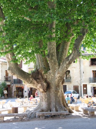 Celles et ceux qui ont eu le courage d'emprunter le grand circuit ont le droit de faire une pause à la terrasse d'un des cafés ombragées par le platane et les autres....aussi !