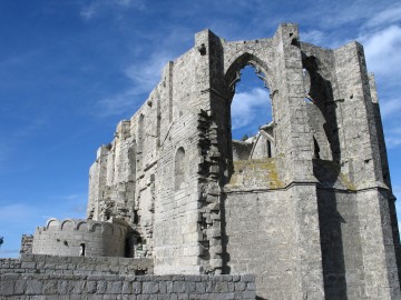 Le brouillard qui submergeait le promontoire sur lequel il est juché ne facilita pas son ascension. Les ruines avaient un aspect fantomatique et menaçant qui me faisait craindre l'apparition soudaine de quelques survivants du massacre prêts à m'estourbir croyant avoir affaire à des sbires du Roi de France. Il n'en fut rien, grâce sans doute à mon allure de mécréant !