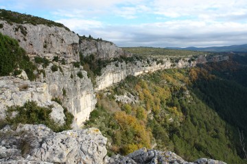 La pente progressive ménage le souffle du randonneur et lui laisse le loisir de méditer sur les générations de migrants et les cohortes de moutons qui l'ont précédé sur ce chemin depuis la nuit des temps. Outre son passé romain, le chemin Farrat était, en effet, jusqu'au milieu du siècle dernier une voie importante de transhumance vers les hauts plateaux des Causses. Parvenu sur le plateau, il ne faut pas manquer de faire une brève incursion sur le bord de la falaise qui offre un panorama à couper le souffle jusqu'au miroir de la Grande Bleue qui ferme l'horizon.
