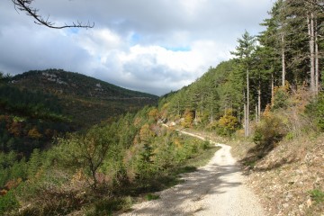 La piste traverse à un endroit donné leGR 71 qu'il faut prendre à droite.Il descend dans le vallon sauvage du ruisseau du Font d'Amans pour rejoindre Soubès.