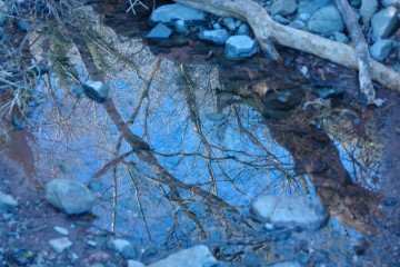 La pente se fait plus raide mais cet effort est récompensé par des vues de plus en plus belles sur la vallée du Lignous. Les chênes blancs qui prospèrent dans cette zone se mirent dans l'eau glacée de quelques flaques, seuls vestiges d'un ruisseau moribond.