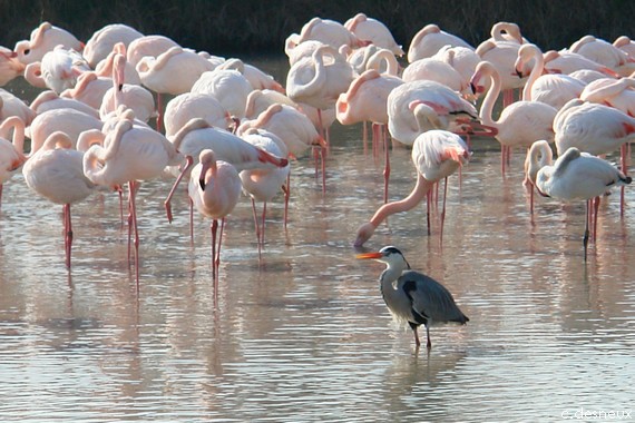 L'un de ses confrères sans doute amateur de ballets roses au mileu de flamants se pose
