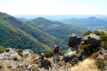 Soudain au détour du chemin, on aperçoit la masse imposante du Canigou qui semble