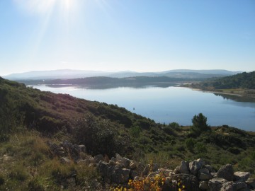 avant de vous conduire, par une belle grimpette, au sommet de la Montagne de Liausson (523m) d'où vous jouirez d'une vue fabuleuse sur les eaux turquoise et les ruffes rouge sang du Lac Salagou.