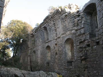 L'abbaye, tel un vaisseau de pierre se dresse sur les flancs du massif dans une mer de garrigue. Fondée au tout début du XII ème siècle par des moniales, elle fut tour à tour cistercienne puis bénédictine. Malgré les atteintes du temps et des hommes qui s'en sont servis comme pierrier après son abandon au XVIème siècle ,suite au recul de la foi, les ruines restent imposantes.Elles comprennent deux églises l'une, la plus petite, qui date de la fondation et l'autre plus majestueuse, qui est de l'époque gothique.