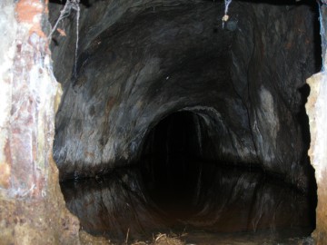 La réalité est qu'une source passe par cette falaise et un conduit creusé dans la roche la canalise (voir photo ci dessus).