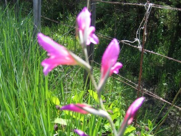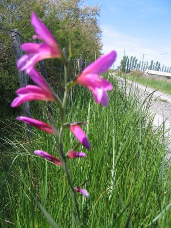 Jolie découverte en prenant un chemin buissonnier pour rentrer chez moi, un "Glaïeul de Byzance" de cette superbe couleur magenta, ce rose fuchia vif, si caractéristique.