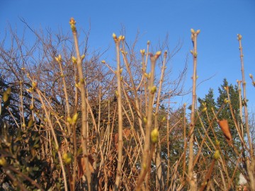 Les lilas blancs, non plus ne sont pas en reste, les bourgeons se sont eux-aussi débarassés de leur gangue brune ! Mais s'il gèle, les feuilles protègeront quand même les fleurs qui sont bien emmitouflées à l'intérieur.