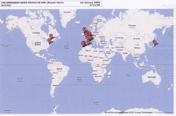 Comme une véritable gamine (que l'on est ou que l'on reste toujours!...) je m'extasie devant cette planisphère (cliquez dessus pour agrandir), et suis véritablement scotchée devant les petits drapeaux qui s'allument au fur et mesure...