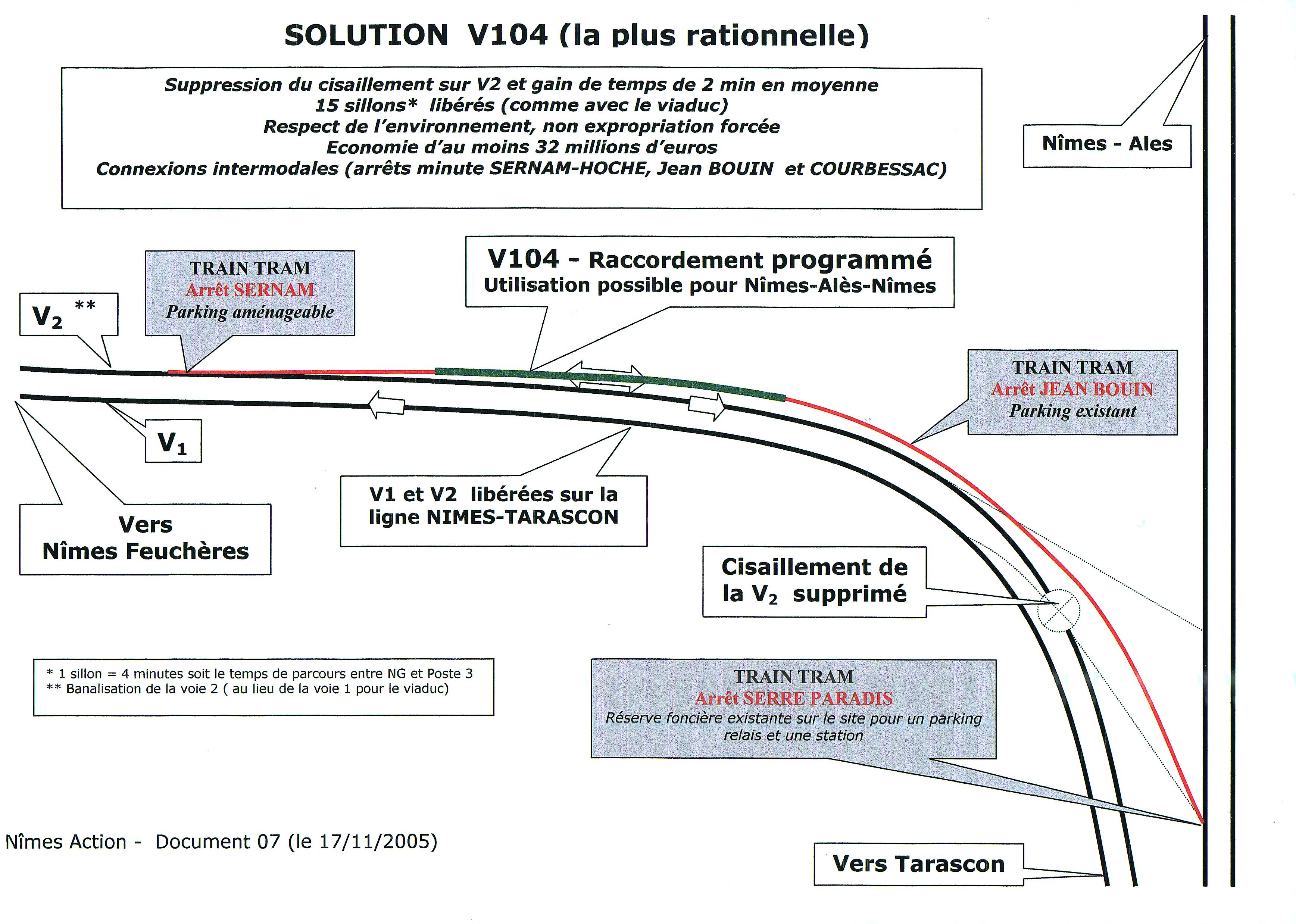- celui-ci privera Nîmes d’une desserte fonctionnelle de TER et de train tram sur les quartiers NORD de Nîmes ce qui serait particulièrement aisé grâce à la VOIE 104 exploitable depuis quelques années mais … obstinément "ignorée" par RFF et la SNCF,