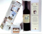 coffret imprimé de mon press-book, à l'intérieur à gd renfort de métaphores, le rapport entre la noble boisson et ma personne,jeux de mots et pointes d'ironie, sans oublier l'exellent breuvage "Château Pégairolles" sponsor du CV.