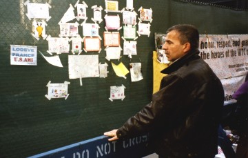 Avec mon ami La Nogue journaliste à midi-libre nous déposons parmis les milliers messages de solidarité une affiche amicale, non loin du World Trade Center encore en fumée