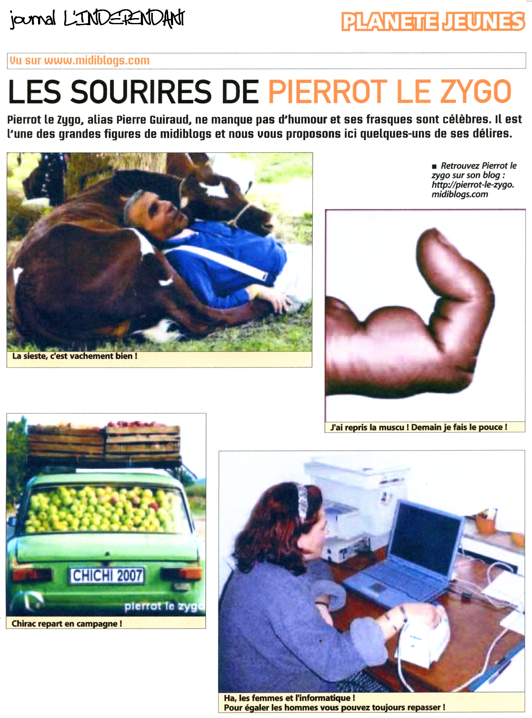 Hier le supp du journal L'Indépendant (Bêtisier 2006) me consacre une page, zavez remarqué la rubrique PLANETE JEUNE