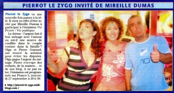 Pierrot sur FRANCE 3, Edition du jeudi 31