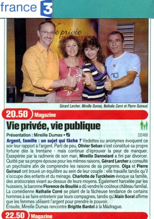 télé guide du 16 au 29. france3 le 27 septembre vie privée, vie publique