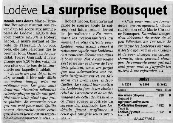 Etonnant le score de Bousquet ! Lecou était maire depuis...1995 ?