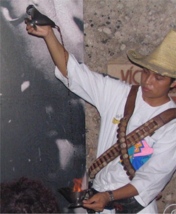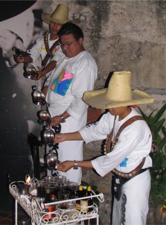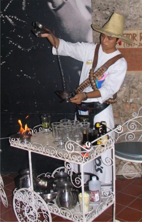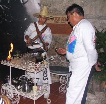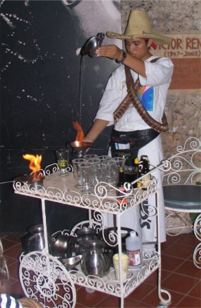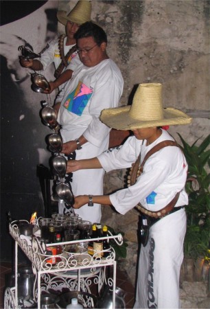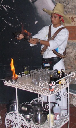 Préparation du café maya flambé au bar-restaurant le PANCHO'S à MERIDA.
