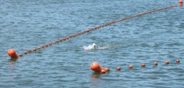 Malgré mon manque d'entraînement pour ce genre de course, j'ai pris le départ du 20km. Je me suis dit que cela serait une bonne préparation pour le marathon de Corfou, fin juin. Je savais que cela allait être dur. Mais le mot est faible. Je suis parti avec une combinaison néoprène dans une eau à 18°C, pensant qu'elle allait m'aider à mieux flotter et me permettre d'aller plus vite. Mais cela a donné l'effet inverse, j'ai commencé à souffrir de la chaleur et mes épaules n'en pouvaient plus d'être comprimées dans la combi. Au bout du 3ème tour, je décidais donc de l'enlever (pas facile d'enlever une combi moulante quand on est dans l'eau ! ). Rapidement, je me suis senti plus à l'aise, mais le manque d'entraînement s'est quand même fait sentir. Dès le 2ème tour, je me suis retrouvé en 4ème position et je ne l'ai plus quitté jusqu'à la fin. Impossible pour moi de rattraper mon prédecesseur, qui se situait plus de 1000m devant. J'ai fait toute la course avec Cathy, ma collègue de club, qui elle se battait pour la 3ème place chez les dames. Malheureusement elle terminera 4ème également. Dans l'avant-dernier tour, je me suis fait rattraper par le premier des "messieurs" qui terminait sa course. De ce fait, comme le stipule le règlement de la fédération, dès que le premier arrive, les autres nageurs finissent leur tour. J'ai donc fait un tour de moins que les premiers et nagé 17km. J'avoue que j'étais bien content d'en finir. Je pense que d'ici Corfou, il va falloir que je mette les bouchées doubles si je veux essayer de faire un résultat là-bas...
