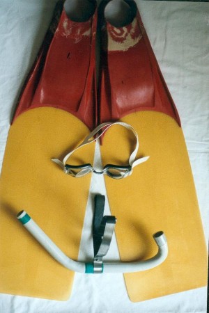 Après avoir participé à la traversée de Sète avec palmes en 2002 (voir note du mois d’avril), je décide avec Cathy d’ouvrir mon champ d’épreuves de longue distance et me lance dans la nage avec palmes. Nous nous inscrivons donc au club de La Palme Sétoise. Là, le président Jean Marie, nous fournis des bi palmes appropriées à ce genre de discipline ainsi qu’un tuba frontal.