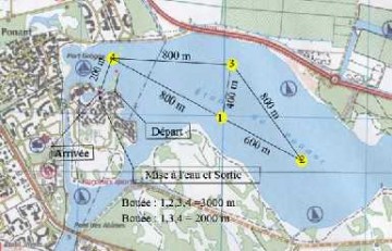 Le parcours avait lieu dans l'étang du Ponant à La Grande-Motte où nous avons dû effectuer une boucle de 2 km (bouées 1.3.4) puis 6 boucles de 3 km (bouées 1.2.3.4)